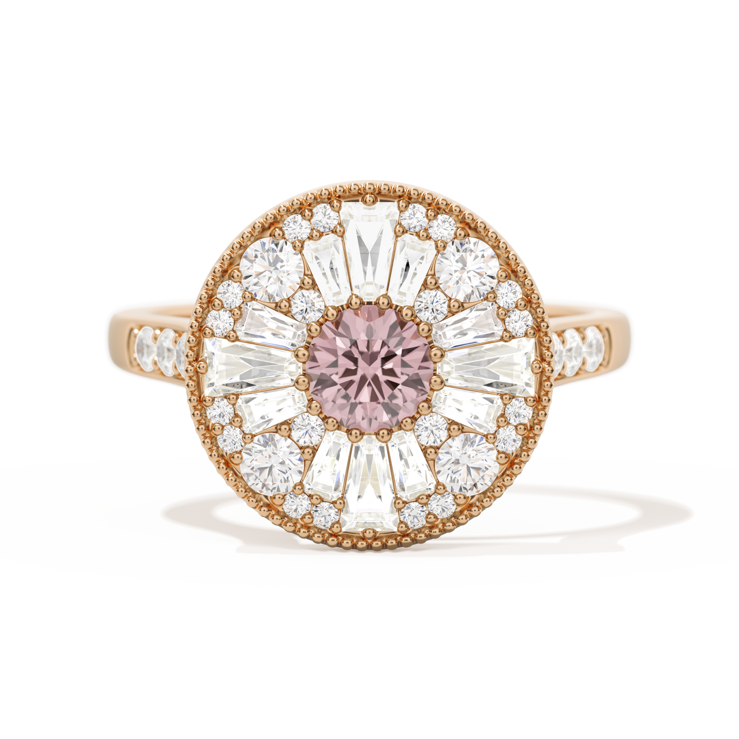 band_style: Antique Shape Diamond Sides / metal: 18k Rose Gold / profile: Inline / setting: Round / stone: Natural Champagne Diamond / style: Ballerina Round