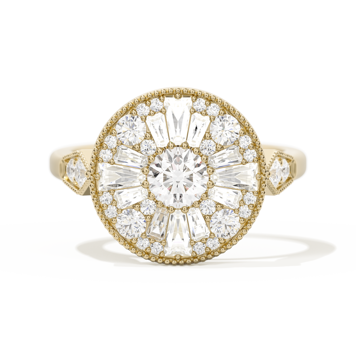 band_style: Antique Shape Diamond Sides / metal: 14k Yellow Gold / profile: Inline / setting: Round / stone: Lab Grown Diamond / style: Ballerina Round